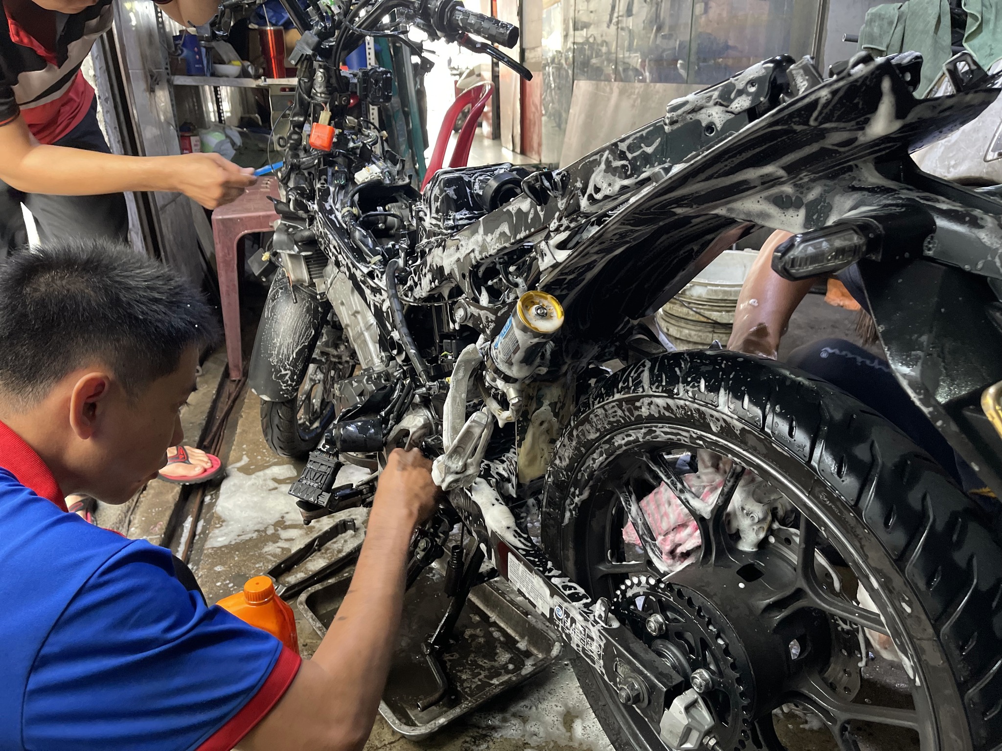 Rửa xe chi tiết cho xe máy siêu sạch: